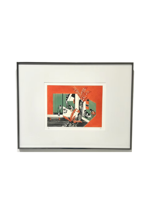 Nous vous proposons d'acquérir cette œuvre déjà encadrée avec soin par notre atelier. L'œuvre est protégée par un verre "Claryl" anti-reflets. Un système d'accrochage est fixé au dos, permettant une fixation murale en toute sécurité.